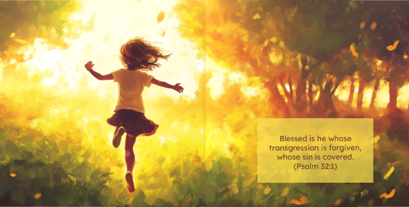 A simple children's picture book inspired by the chapter titled "A Model Lesson for Teachers" in Charles Spurgeon's book Come Ye Children: Practical Help Telling Children About Jesus. Each page features a verse taken from Psalm 34 or Psalm 32 and a colorful illustration of children living out the verse.